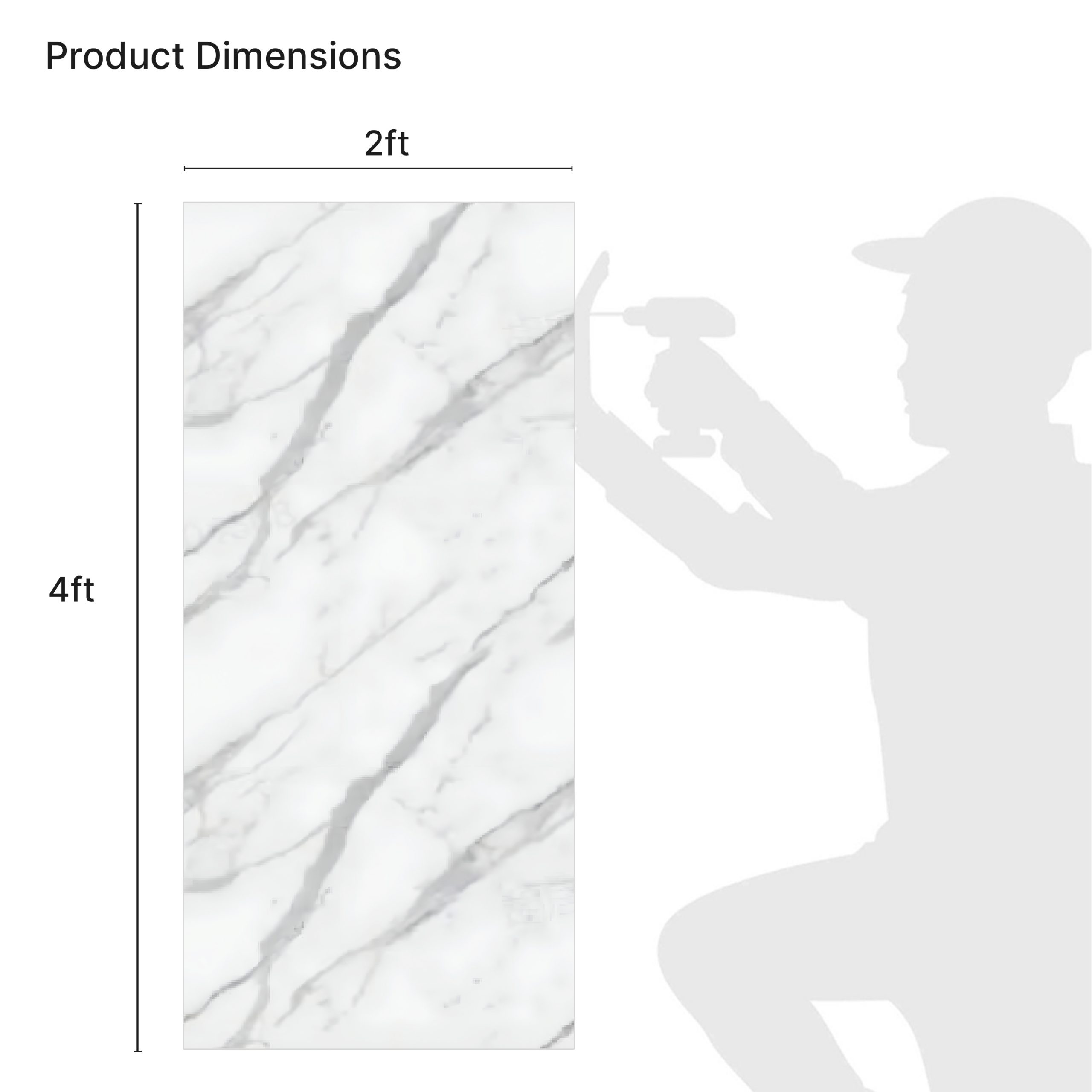 Faux Marble Wall Panels – 2 ft X 4 ft – Glossy, Waterproof Indoor Wall Cladding – Off-White, Grey Veins