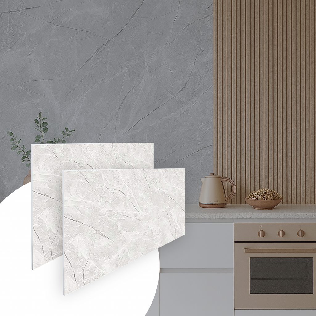 Faux Marble Wall Panels – 2 ft X 4 ft – Glossy, Waterproof Indoor Wall Cladding – Tan, Grey Veins